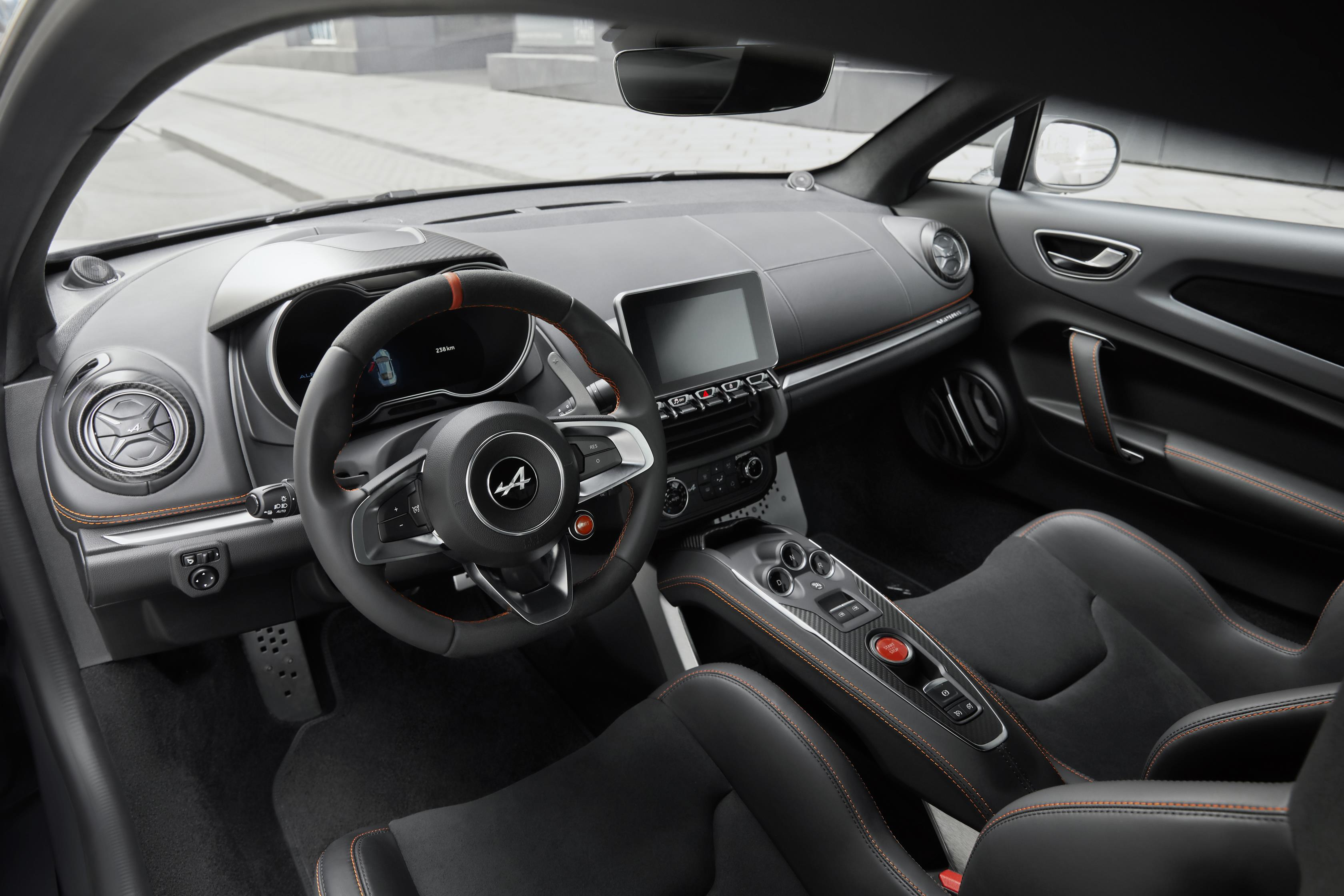 Developing 40bhp more than its 248bhp ‘standard’ version of the 1.8-litre mid-engined powerplant, the new model is intended to provide a more involved driving experience. Its elegant aluminium alloy bodywork features innumerable evocative design elements in its mere 1.1-tonnes kerbweight. Yet, the A110S remains a moderately practical sportscar for today, with two luggage compartments, one beneath the glazed engine cover (100-litres), with another 96-litres beneath the bonnet.