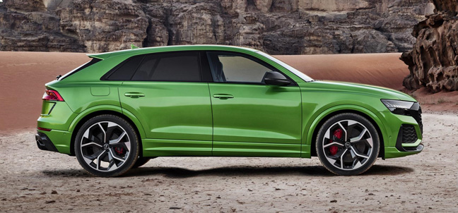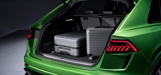 Adaptive air suspension features electronically controlled damping and means that the Q8 RS is equally at home on a racetrack, as an off-road trail. Its suspension tuning allows for a particularly broad spread between comfort and an extremely sporty setup. Dependent on the driving situation and occupants’ needs, the car’s ride height can be varied by up to 90 millimetres.