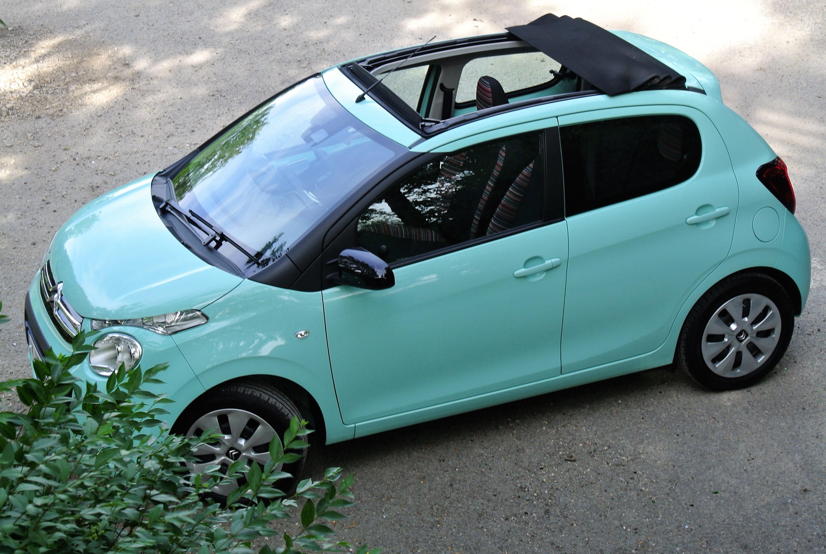While Ford referred to its base colour as ‘blue’, Citroen calls its thoroughly modern version Pacific Green. Regardless, it is a bluey-green hue that causes peaks of hilarity (as all two metres of me extracts myself from it), extreme biliousness, or shades of envy, all of which suggest that it is bang on-trend. Apart from its black, electrically-operated, roll-back ‘soft-top’, every available inch of the baby Citroen’s bodywork is painted in the crisp Sea World colour scheme that creates near-nuclear reactions. If a carmaker wants to formulate a response with its smallest motorcar, colour is a great way to do it.