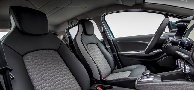 The new Zoe has been thoroughly revamped inside, with the most notable aspect being the seat fabric produced from recycled materials. On the GT Line version, the upmarket ‘leather’ and cloth combination is produced similarly. Using a special carding technique, without melting or chemical reconstruction, the industry-first process uses old seatbelts and recycled plastics in what is known as ‘short-loop’ manufacturing, thus reducing emissions by around 60%.