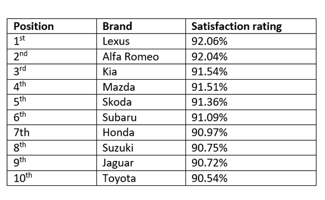 Both Lexus and parent company Toyota have earned an indefatigable reputation for their overall dependability, a characteristic that is placed very highly in the hearts and minds of their owners. However, the Top Ten list highlights that broader customer satisfaction levels are on a genuine high at the moment.