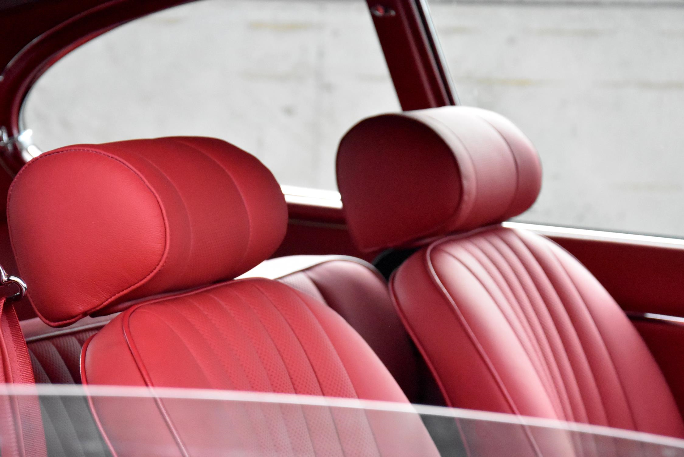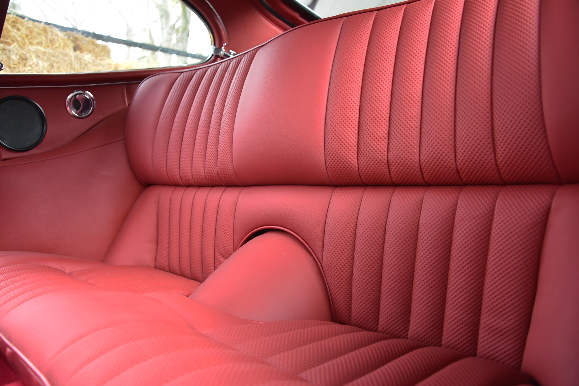 An uprated 5-speed manual gearbox completes the revised drivetrain package, with gearing that makes both long motorway drives and challenging country lane jaunts a total pleasure. Additions within the fully-retrimmed Oxblood Red leather cabin include: a 15.0-inch diameter wooden steering wheel that makes the most of the car’s spirited handling envelope, bespoke classically-styled inertia reel seat belts, for improved comfort and safety, and an LED dash light conversion to improve visibility on evening drives. A period style stereo system, which hides full modern internals, includes Bluetooth capability and finishes the interior in fine classic fashion.