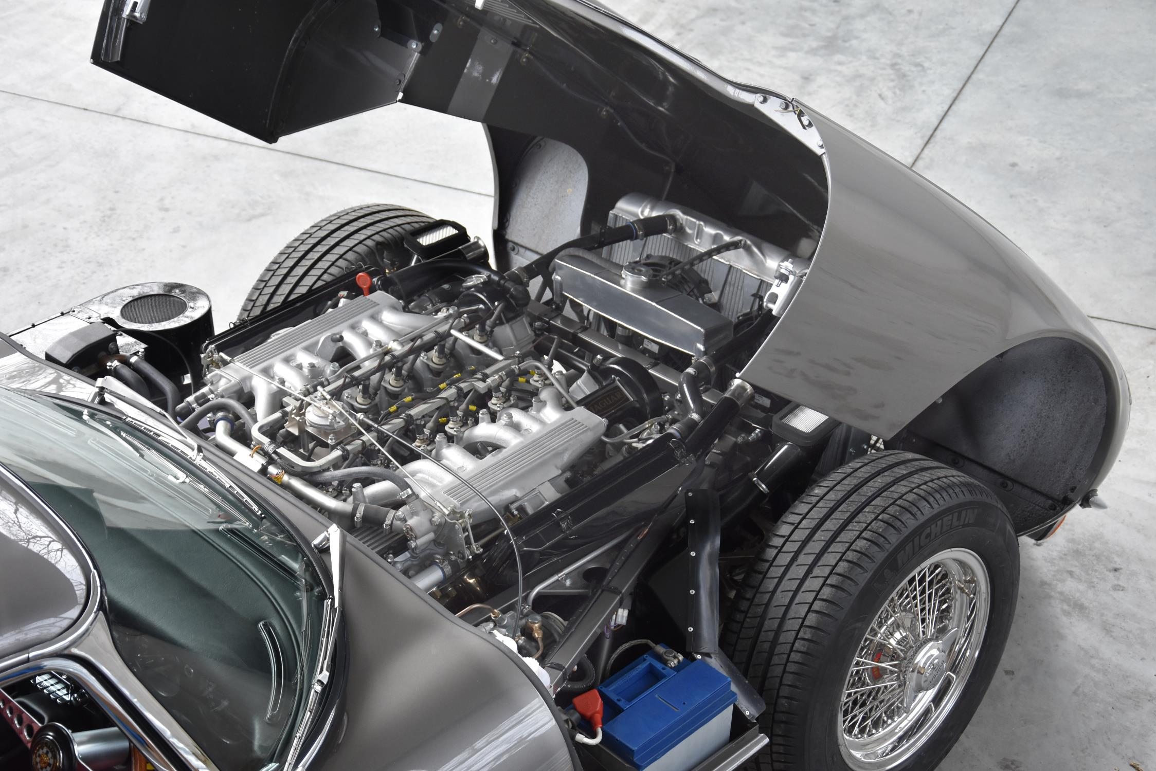 Under the now-perfect body, the suspension was revised heavily for improved ride and handling characteristics, with all-round adjustable springs and dampers, including sports torsion bars, anti-roll bar and uprated bushes. The combination transforms the E-Type, while also allowing the customer to select a preferred suspension setting. AP Racing brakes replace the standard units, with larger diameter discs, aluminium callipers, with an increase from three to four pistons, which improve the stopping power, while reducing weight. 16.0-inch diameter Turino wire wheels were chosen not merely for their aesthetic value but also because they allow the fitting of modern tyres for improved traction, as well as reducing corner weights, thanks to aluminium rims and stronger stainless-steel spokes over the original wheels.