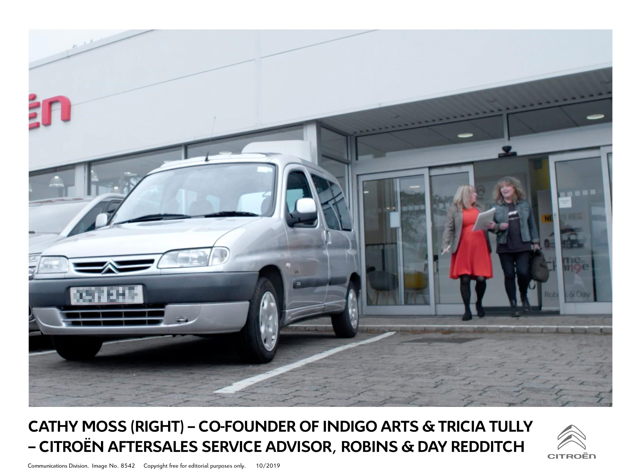 In a separate initiative, Cathy Moss, the co-founder of Indigo Arts in Redditch, has had her 19-year old Citroën Berlingo Multispace repaired free of charge by the Robins & Day dealership in the town. Indigo Arts is an organisation that works with people of all ages and abilities, making the Arts accessible to everyone, whatever their background. Since 2001, Indigo Arts has funded a series of highly successful projects, performances and workshops in a variety of visual and performing arts, all designed to build confidence and create a sense of community. Watch the video here.