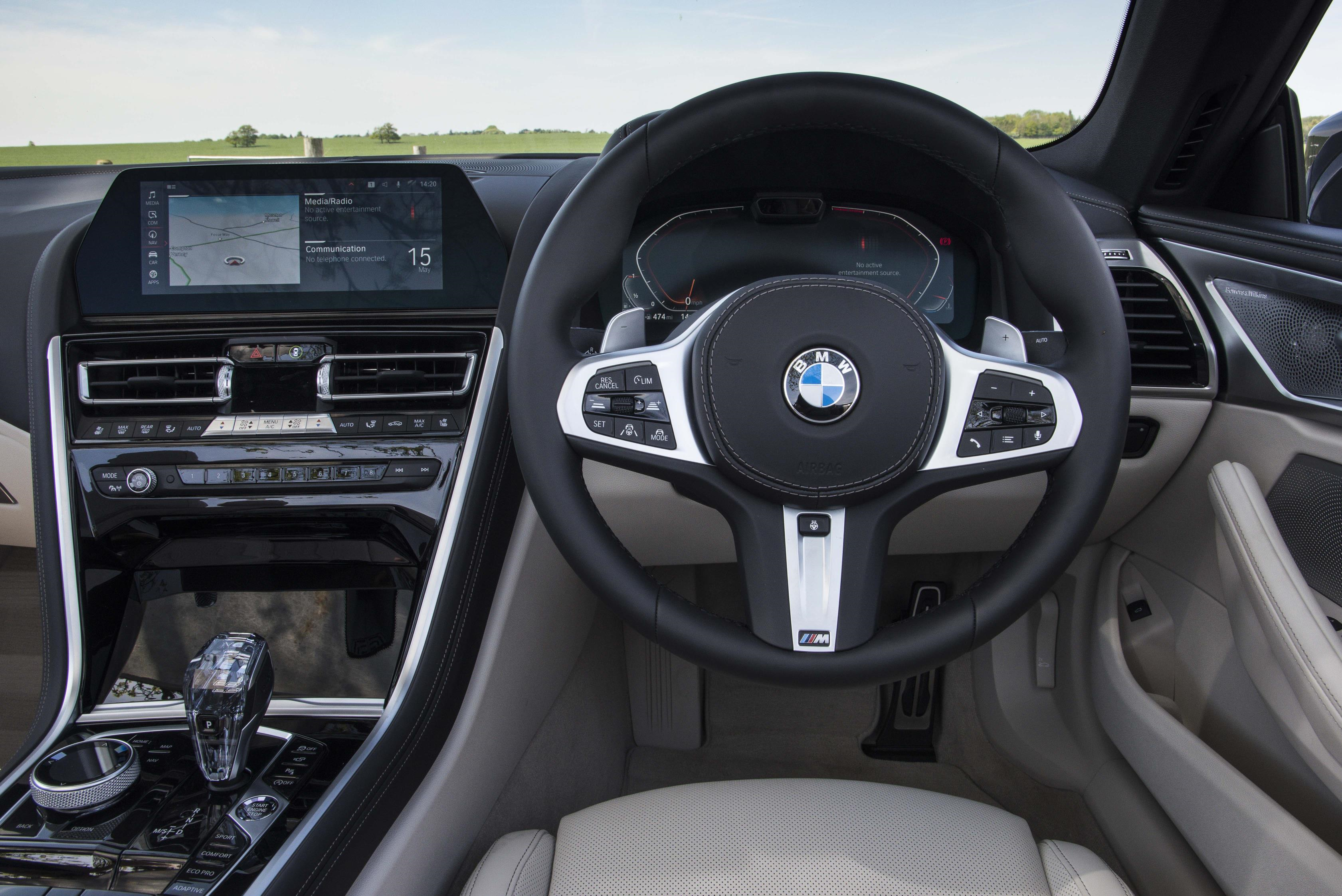 The 8-Series convertible is equipped with adaptive LED headlights as standard, although BMW’s Laserlight development, with variable road illumination and selective beam operation, is available as a cost option. The car can be customised further, with the Chrome Line, or M Carbon exterior packages. The roof is both lightweight and provides additional acoustic insulation. Opening and closing automatically, in 18 seconds, at the touch of a button, it can be activated when the car is travelling at speeds of up to 31mph.