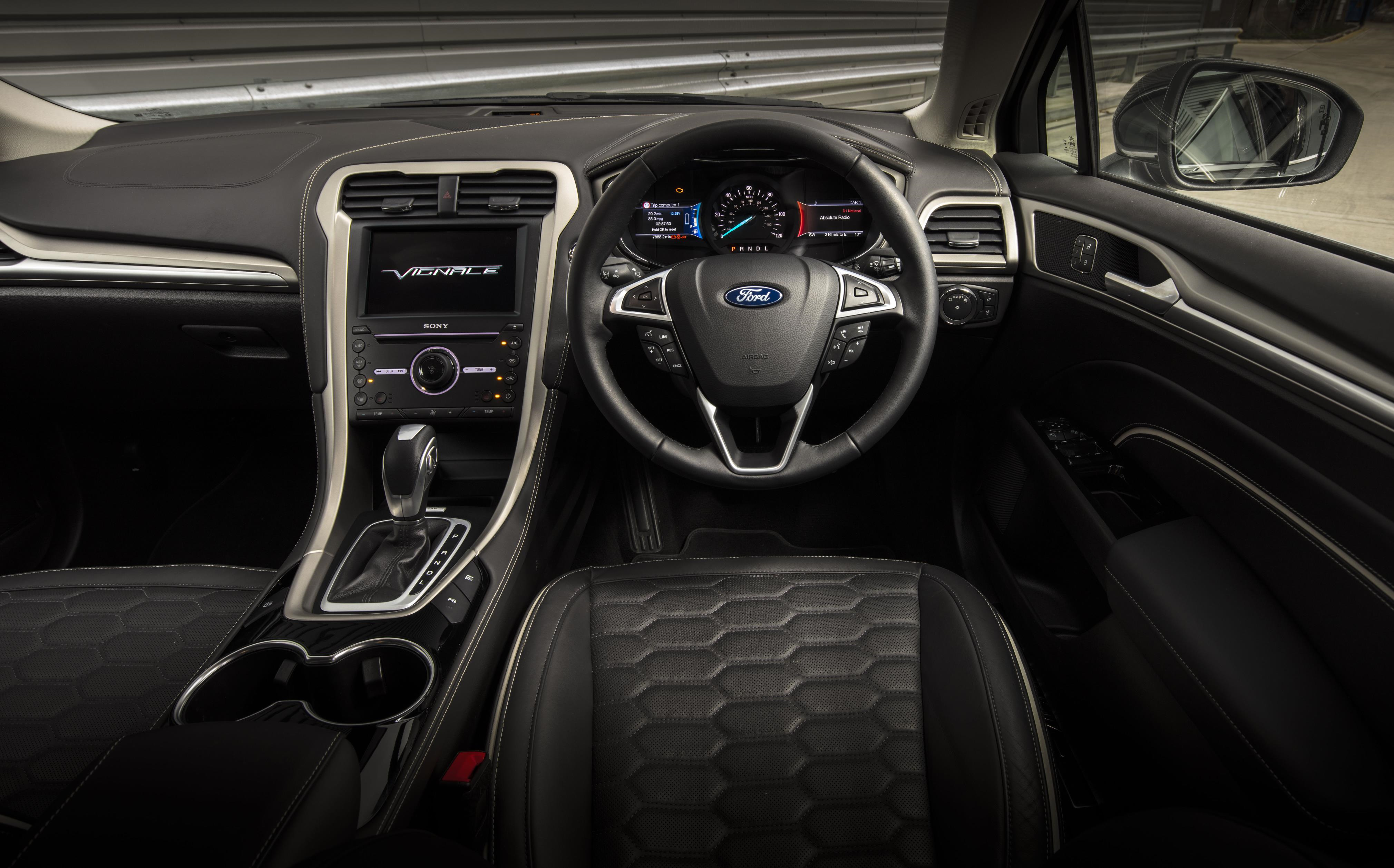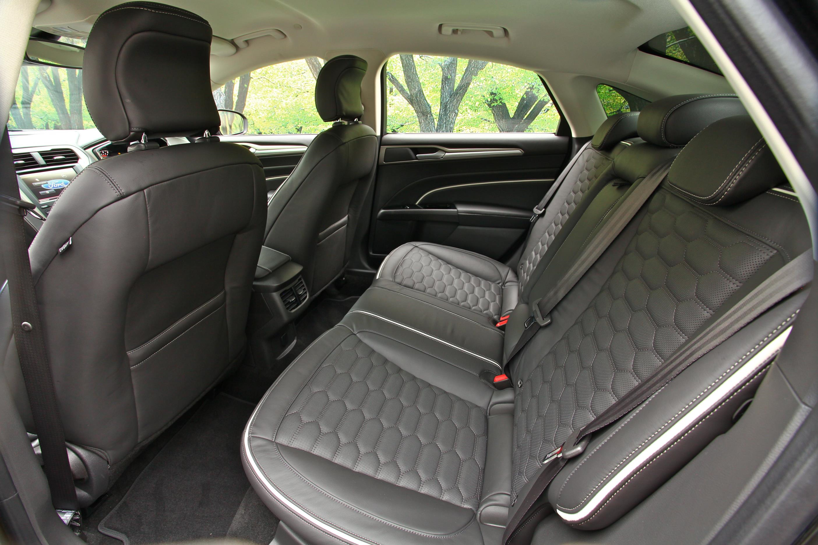 The rest of the cockpit is upmarket Ford, with some very fine detailing around the abundant space on offer. Externally, the styling revisions follow current trends for extra ‘bling’. Looking past the latest slim-line LED headlamp units and the ‘Hybrid’ badges on the flanks, to the tail of the car, an aerodynamically-optimised hint of a tail spoiler on the boot lid and a splitter below the rear bumper unit are very elegant.