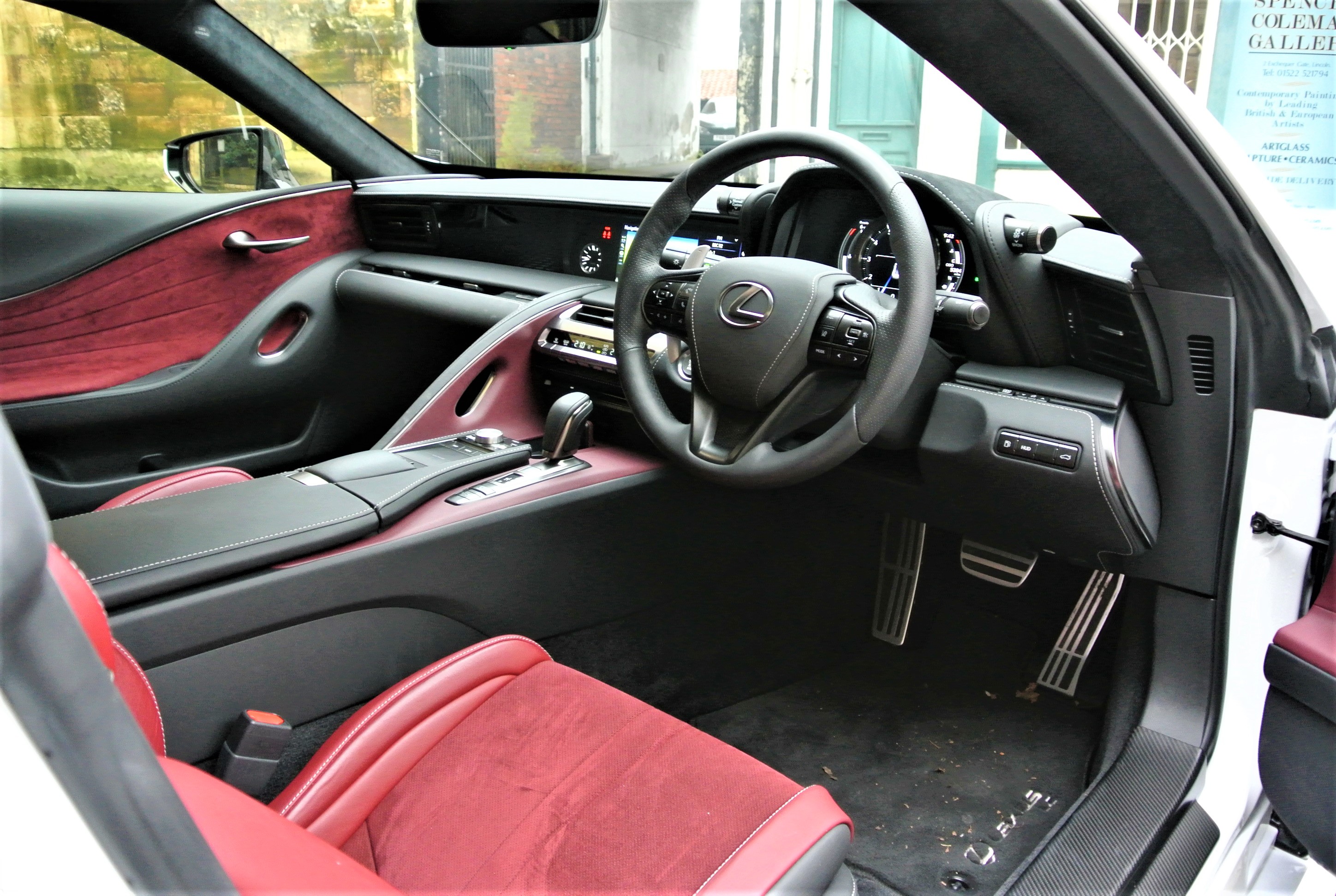 Sitting on forged, 21-inch diameter alloy wheels, clad in 245/40 (f) and 275/35 (r) tyres, grip levels are high, despite torque induced breakaway, and the variable-ratio steering is religiously sharp. Body roll is maintained at negligible levels, although the adaptive suspension allows a supple low-speed ride quality, which becomes more focussed as speed increases. Enormous ventilated brake discs, front and rear, provided assured stopping power. While fuel economy is always a consideration, the LC500 can be coaxed into returning in excess of 30mpg, driven with care, although a still laudable 27.8mpg was my average, while dipping into the car’s enormous resources, the figures did tumble inevitably into the high-teens. At 267g/km CO2, road tax is a whopping £2,000 in year one and £450 annually thereafter for five years. The car is also insured in Group 49E.