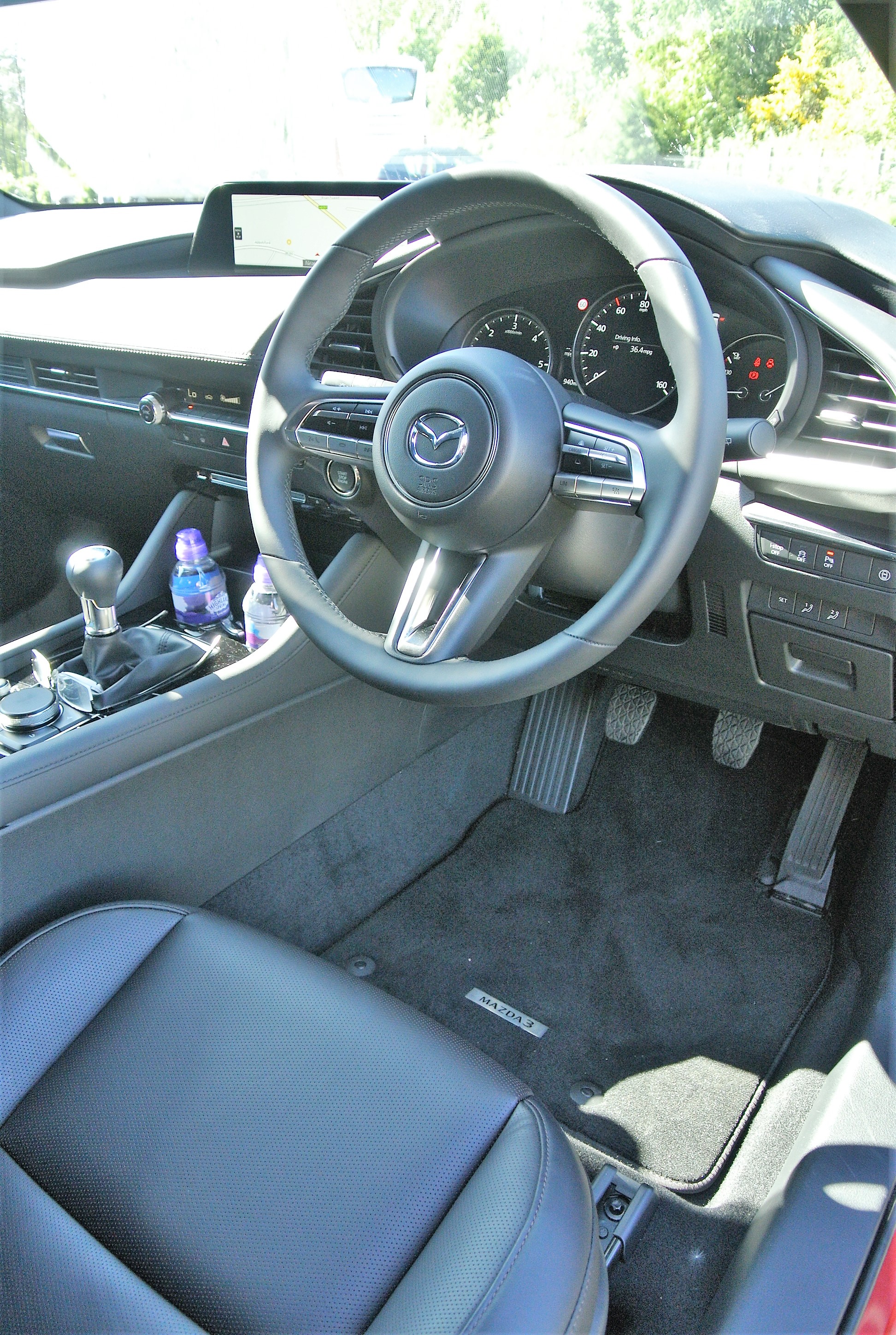 With just 119bhp available from the 2.0-litre naturally aspirated four-cylinder petrol engine beneath the bonnet of the 1.4-tonne Mazda3, your performance expectations will not be high. Yet, this is no ordinary petrol engine. In fact, using technology that is broadly familiar, it is hooked-up to a mild hybrid system, which provides a practical bottom-end and through rev-range energy boost that obviates a need for a turbocharger and allows Mazda to prove its long-held theory that a larger capacity engine can provide smaller capacity benefits.