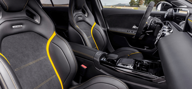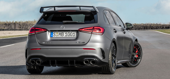 Once past the dynamically charged interior (yellow highlighted for the S models), it is what lies beneath the bonnet that turns both versions into thinly masked supercars. The world's most potent turbo-petrol four-cylinder engine betters the output of the preceding unit in both power and torque terms. It is largely hand-built by AMG. However, by rotating the transverse unit through 180-degrees, thereby positioning the exhaust system adjacent to the cabin bulkhead, while the fuel injection system is way out front, a freer breathing engine results and it can carry high spin speed, up to its 7,200rpm redline. Even with all-wheel drive (a near essential for traction, complete with electro-mechanical torque-split that allows a ‘Drift’ mode) and driving through an 8-speed, twin-clutch, automated-manual gearbox, the cars will eclipse the 0-60mph blitz in a cool 3.6s, enough to give a Porsche 911 a fright.