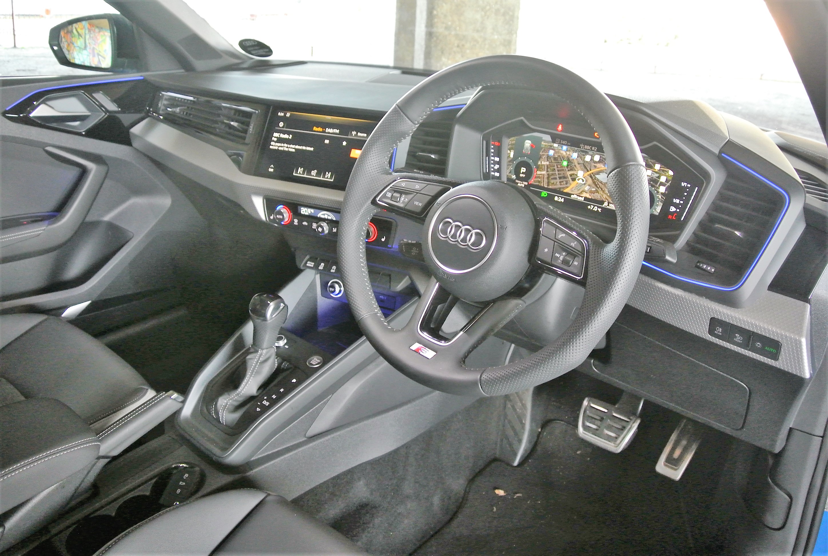 The gorgeous Bugatti blue paint finish of the test car is one of several attention-grabbing colours from a broad palette that infers fun and character. Powered in A1 30 TFSi form by VW Group’s beguilingly sweet 1.0-litre, turbocharged petrol-triple that develops a modest 113bhp, hooked up to a seven-speed S-Tronic (DSG) automated-manual gearbox, its performance envelope is very strong. In fact, it will top-out at 126mph, despatching the 0-60mph benchmark in a brisk 9.3s. It returns up to 48.7mpg and emits just 108g/km CO2 from its tail-pipe and, even punting it in a vigorous manner, most drivers will seldom attain less than 40mpg, as a measure of its overall efficiency.