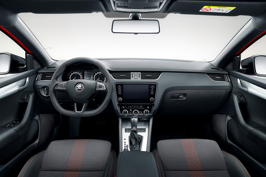 In terms of standard equipment and technology, the SportLine builds on the already well-specified SE model but adds Amundsen satellite navigation, complete with 8.0-inch touchscreen display and integrated Wi-Fi, Infotainment Online (one year), Light assistant (coming home, leaving home and tunnel illumination) and rain sensor. In the cockpit, SportLine customers benefit from more heavily bolstered sport seats and dark grey and red upholstery, a plush black headlining and a sportier three-spoke leather-wrapped multi-function steering wheel (which also comes with paddles, if specified with the optional DSG automated-manual gearbox).