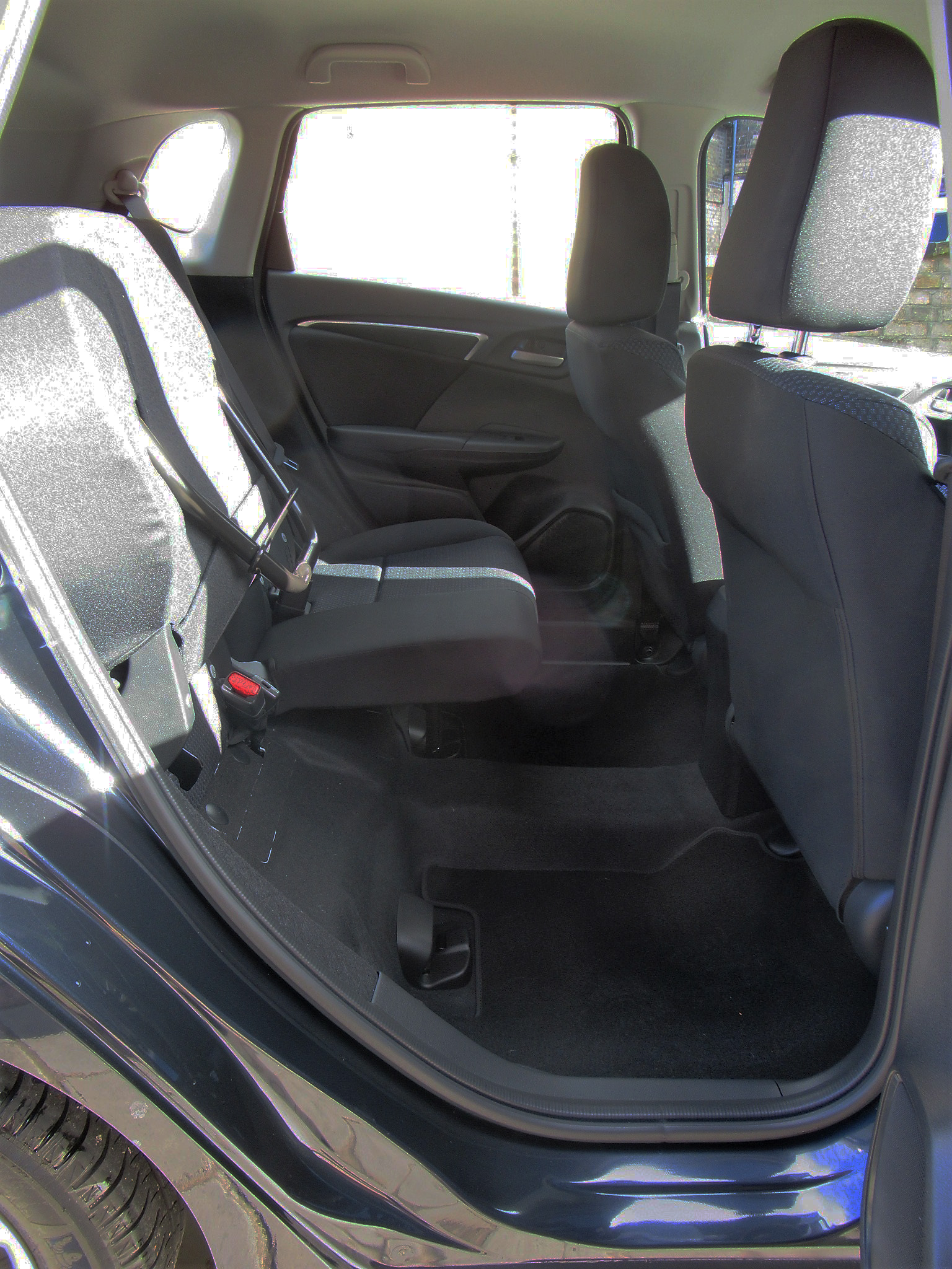 While the original Jazz could be described as a ‘puddle-jumper’, the current model benefits from more compliant ride and handling behaviour. Bump absorption is good and the electric power steering is surgically crisp in its responses, which helps when threading bends together. The dashboard design is interesting, the thoughtful, view-enhancing profile of the front screen pillars being much-welcomed, although the resilient plastic mouldings could benefit from a few softer touch surfaces. Stowage space for personal items is abundant and includes a ‘drinks-holder’ at the right-hand of the dash that is perfectly placed for a mobile, or a roll of mints.