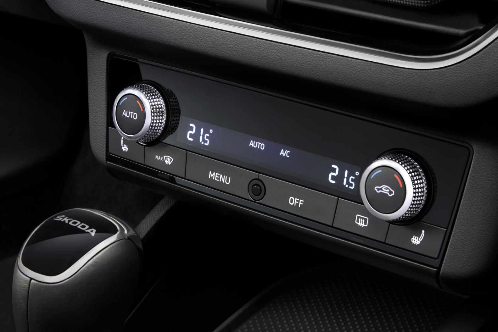 The controls for the air conditioning in the centre console and the buttons for the start/stop system, Driving Mode Select and Park Assist, right in front of the gear shift lever, are similarly well placed and within easy reach of all driver seat positions. The lateral air vents extend into the doors and amplify the visual impression of width, adding to the generous sense of space. Both dashboard and front door trim panels feature a sophisticated soft-foam surface, with a specific new grain texture. This emulates crystalline structures and will define Skoda’s future brand style.