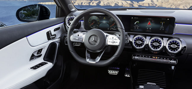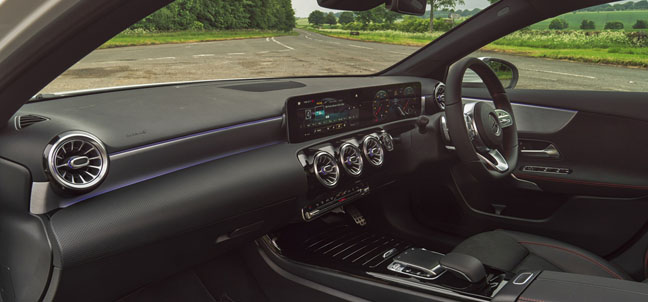 Every A-Class model comes well equipped. The entry-level 'SE' trim features twin seven-inch displays including a central touchscreen with MBUX multimedia system featuring 'Hey Mercedes' voice activation. Plus there's comfort suspension, 16-inch alloy wheels, a DAB radio, Artico man-made leather and Bertrix fabric upholstery, Active Lane Keeping Assist, Speed Limit Assist, a Keyless-Go starting function and air conditioning. The 'Sport' trim line adds LED high performance headlights, 17-inch alloy wheels, Artico and 'Fleron' fabric upholstery and automatic climate control. 'AMG Line' customers will benefit from 18-inch AMG alloy wheels, an AMG bodystyling kit, Artico and Dinamica microfibre upholstery and a three-spoke sports steering wheel.