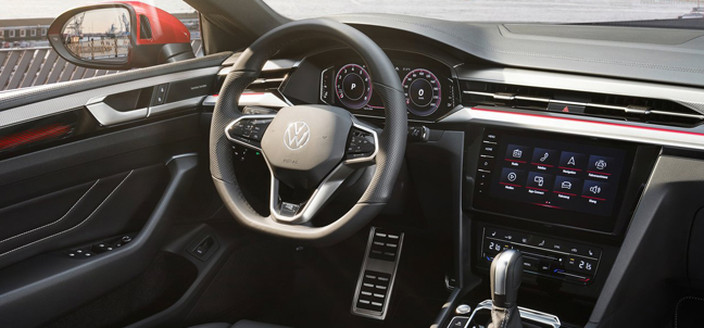 On the road, early reports suggest that you can expect luxury segment standards of ride, even if you specify the huge optional 20in wheels and low-profile tyres. There's an adaptive damping system and standard 'progressive' variable-rate power steering. Don't expect the combination to deliver BMW 4 Series Gran Coupe standards of driver involvement though. As for performance, the 2.0 TSI 272PS petrol model makes 62mph from rest in 5.6s on the way to an artificially-restricted top speed of 155mph. For the 240PS diesel, the figures are 6.5s and 152mph.