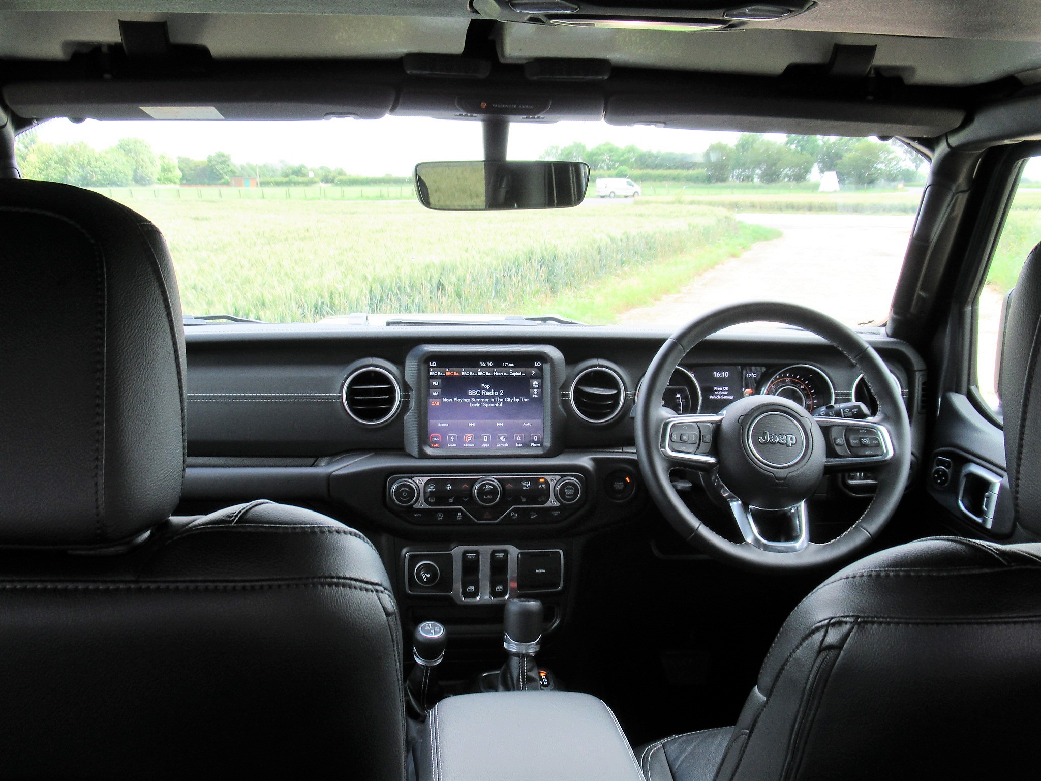 Its cockpit is a hearty mismatch of semi-luxurious, double-stitched leatherette and naked fibreglass (removable roof-panels), with colourful dashboard contents and the Jeep corporate touchscreen that controls just about everything. When not clashing cranium with purposeful roll-cage, there is enough space for well-judged jaunts but, much beyond short hauls and show-off shopping trips, this car’s real purpose lies in promoting fun, wherever you can get it, a factor not helped by its (pre-discount) list price of £44,865, bolstered by a £1,500 Launch Edition luxury pack and £775 for the Granite Crystal metallic paint finish.